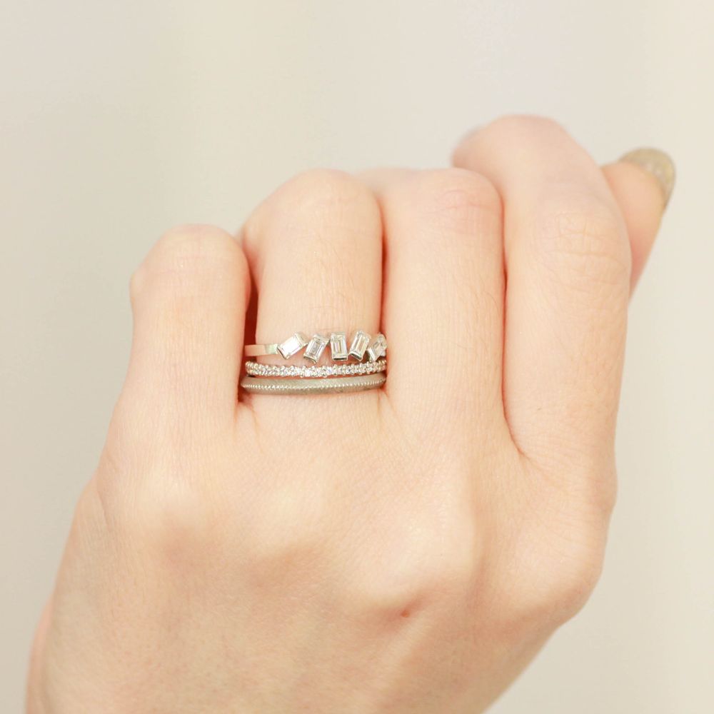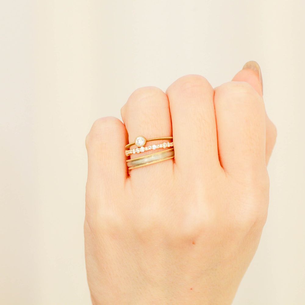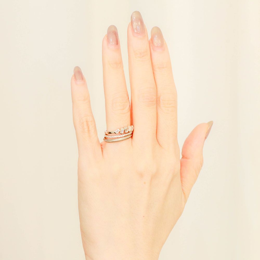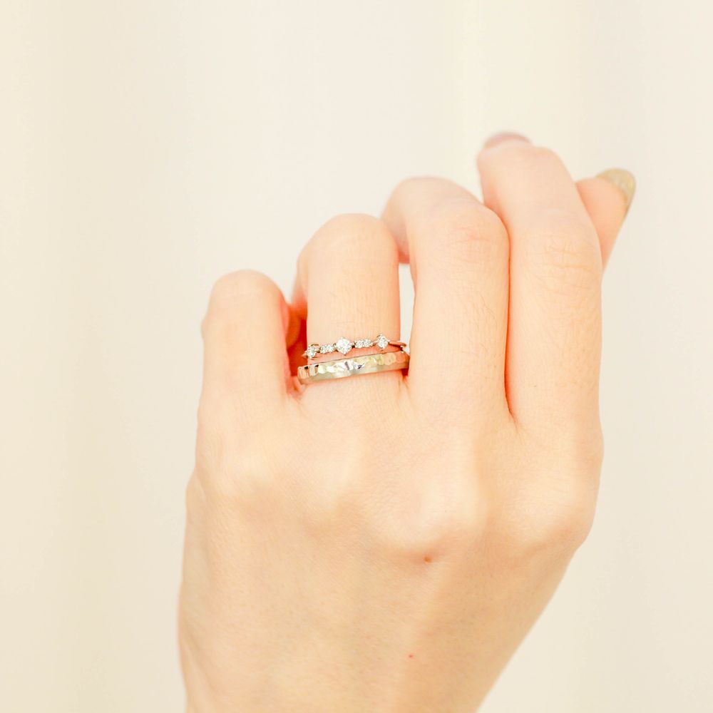 ありそでなかった指輪たちはe.m.のクラフトマンが一点一点丁寧に作り上げています。お渡しまでに約1ヶ月半の製作期間をいただいております。サイズはご希望に合わせて0.5号刻みでのオーダーが可能です。永く大切にお使いいただけますよう心を込めてお作りいたします。