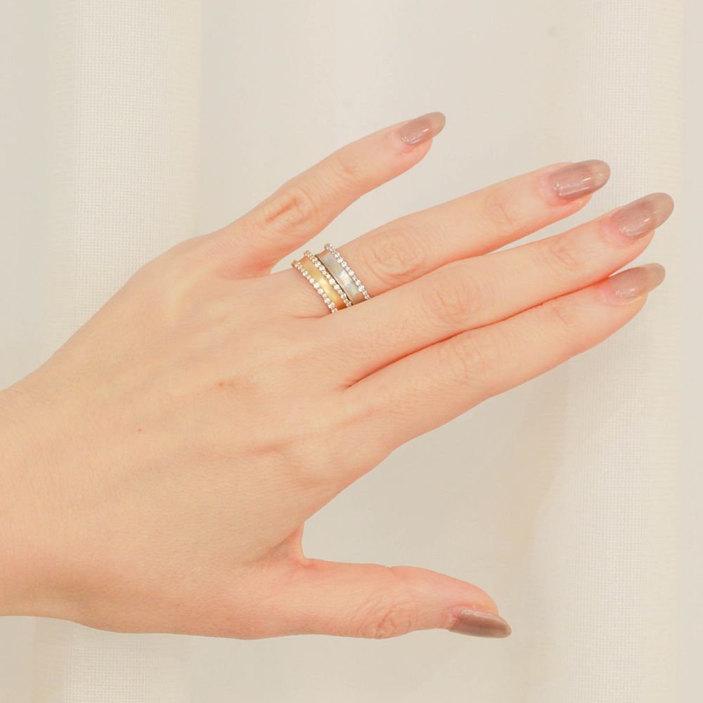 ゴールド:輝き、耐久性、色合いにおいて理想とされるK18を使用し、3つのカラーバリエーションをご用意しております。ゴージャスな印象のイエローゴールド(YG)/ 柔らかい色味が特徴のピンクゴールド(PG)/ 重厚感があり落ち着いた雰囲気のホワイトゴールド(WG)
