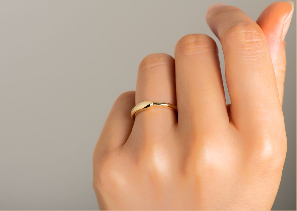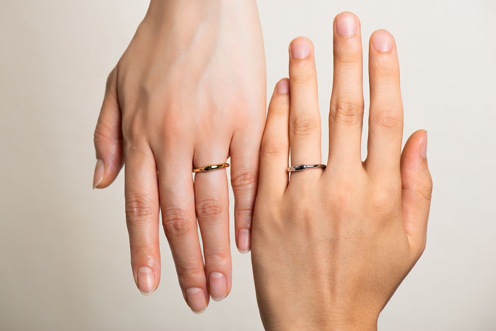 エンゲージメントリング「Hug」のデザインイメージを継承したマリッジリング。豊かなトップから繋がる滑らかなグラデーションは美しく、 指なじみもとても良いのが特徴です。プレーンなデザインをお探しの方にもぜひ一度つけていただきたいリングです。優しくハグされるイメージは、ヘルシンキにあるテンペリアウキオ教会で感じた、暖かく大きな何かに包まれる体験と重なりました。