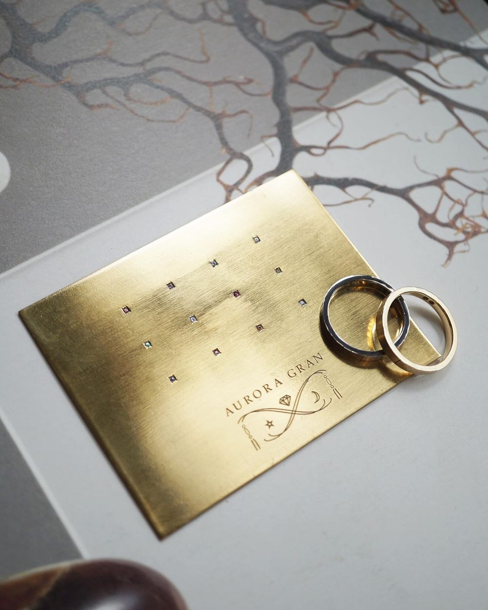 マットに仕上げた二つの輝きはまるで空と大地。地平線に沈む夕日は、地球の自転を感じさせてくれます。インドのタージヤムナで見た夕景をデザインに込めました。