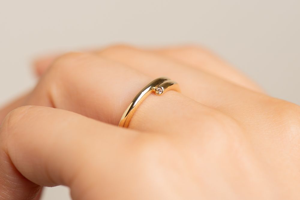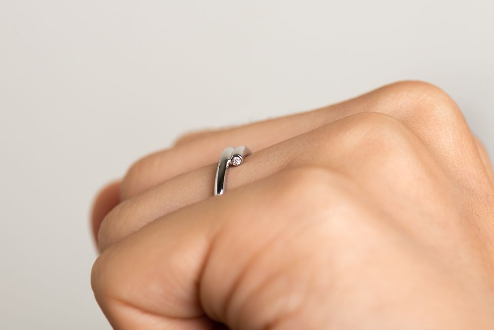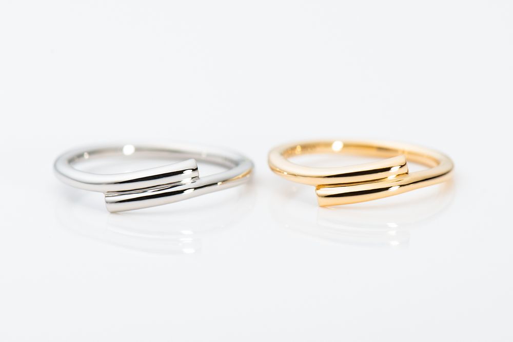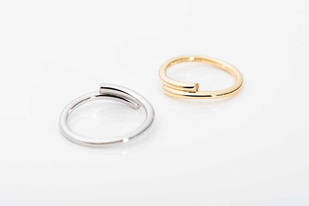 柔らかな波音が聞こえてくるかのように優しいウェーブのリング。時おり跳ね上がる飛沫の煌めきを、先端のダイアモンドで表現しました。センターで重なる二つのラインはしなやかに、そして力強く支え合っています。
