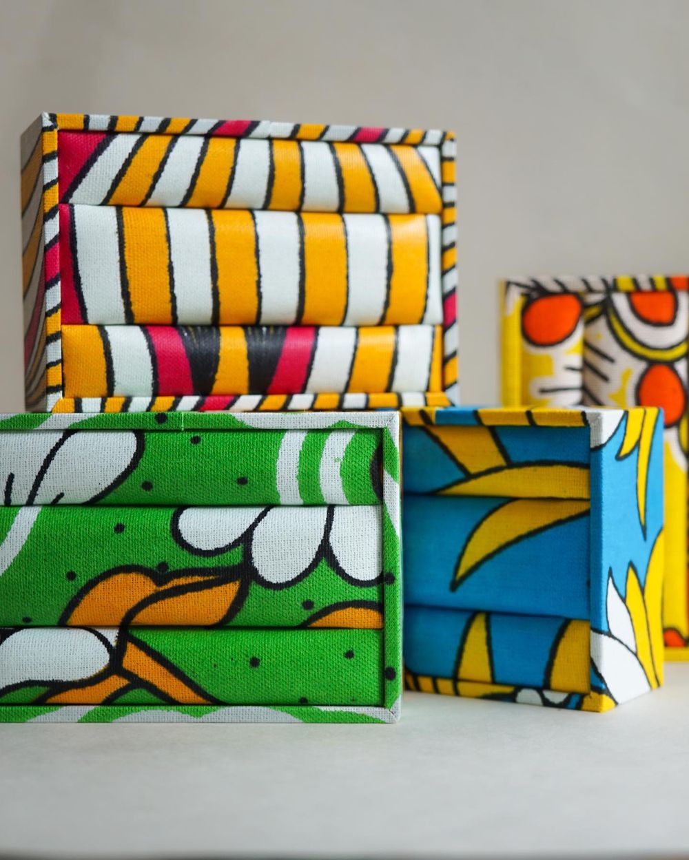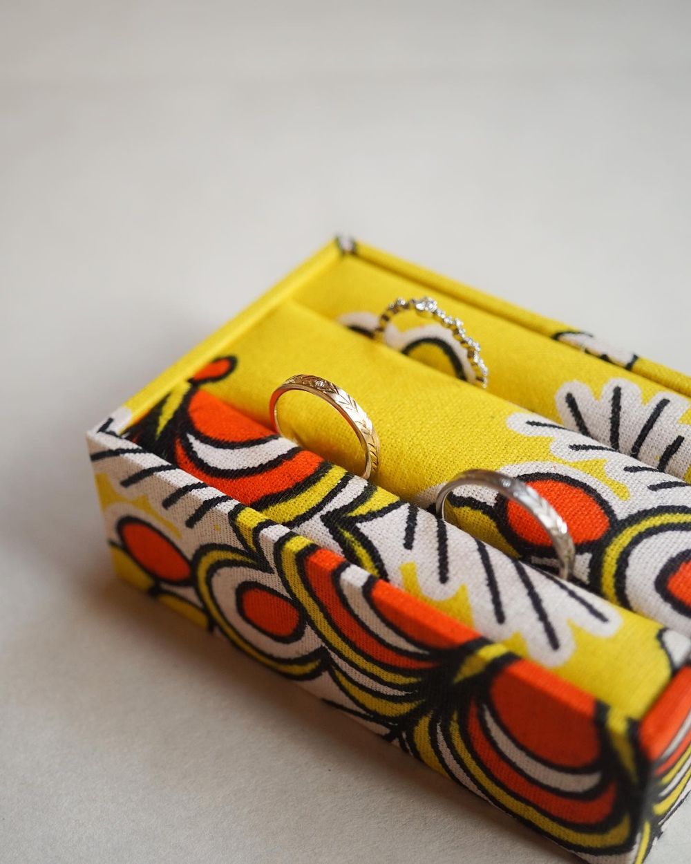アフリカンファブリックを使用した1点もののジュエリーレスト。『Furaha』はスワヒリ語で「楽しさ」や「幸せ」デザイナーの想いがこもったノベルティです。