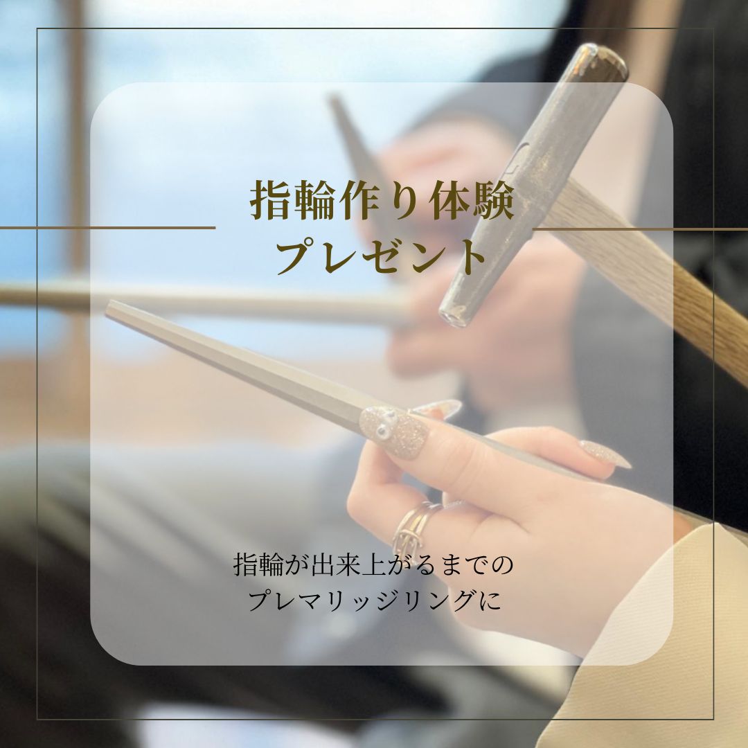 当店で人気の「指輪作り体験」プレマリッジリングとして。シルバーリングをペアでプレゼント!