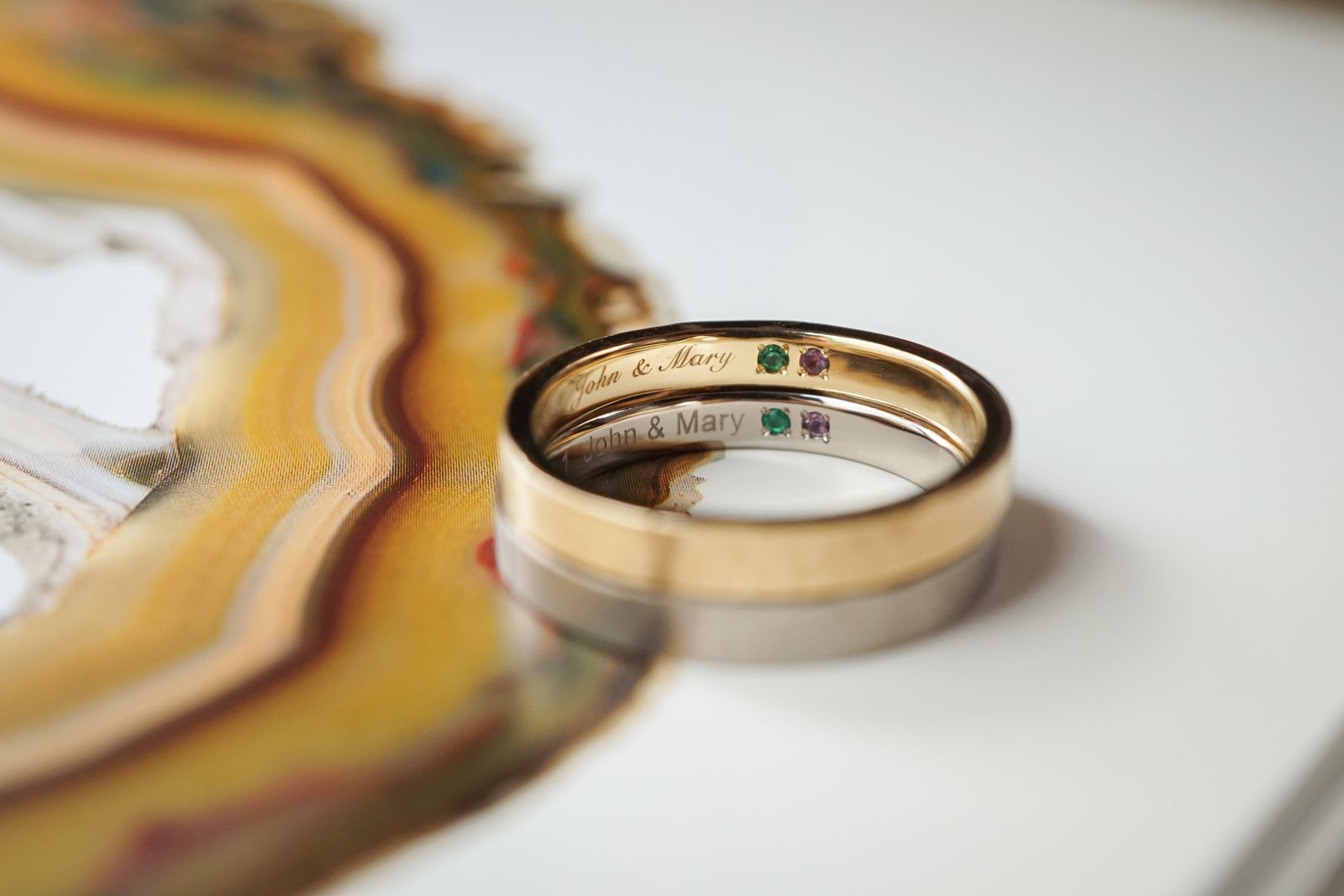 指輪の内側にお二人の誕生石を。*通常は有料オプション