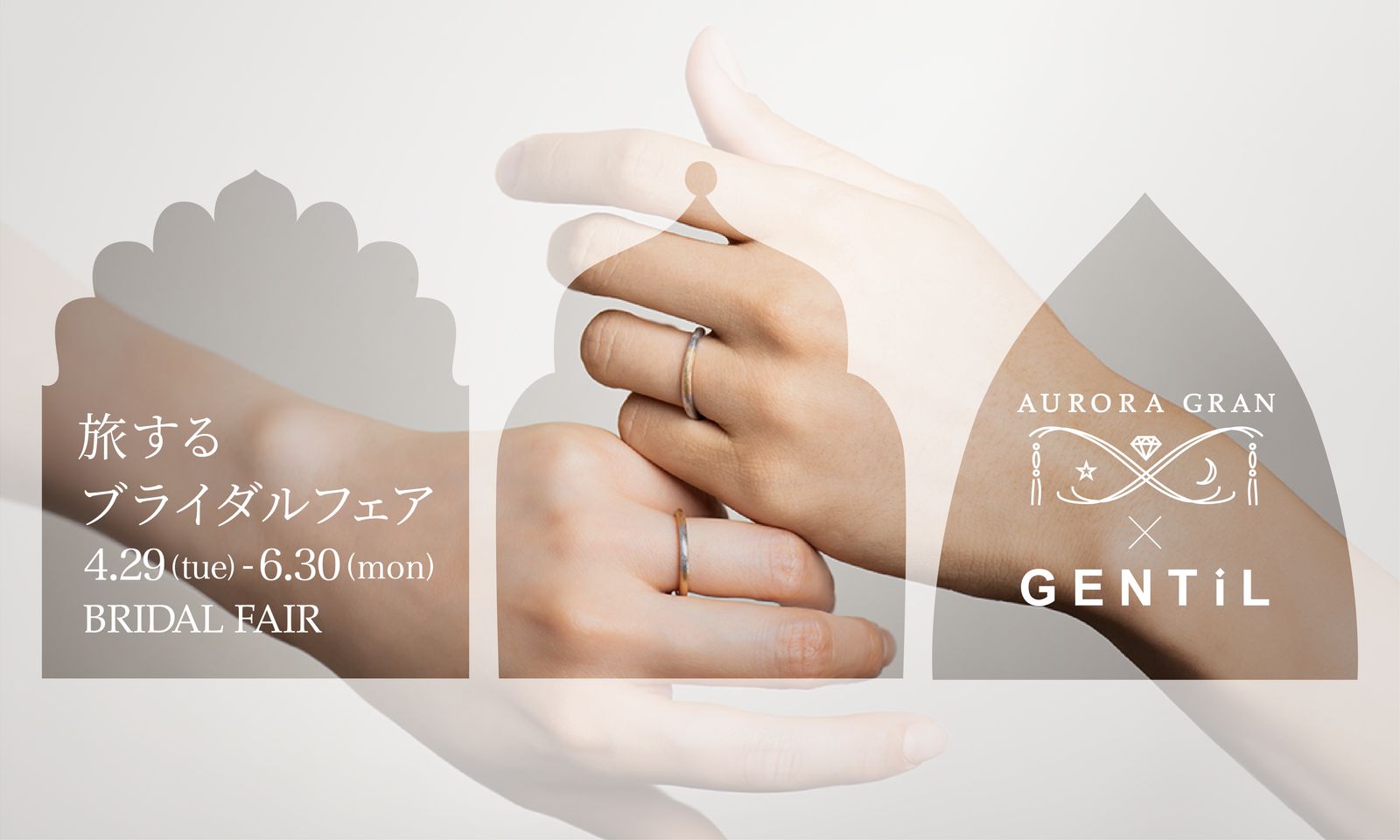 オーロラグラン表参道店××GENTIL(ジャンティールキタカミタテマチ店)で開催するブライダルフェア。旅をテーマにしたブライダルリングを通してデザイナーが感じた様々な景色を感じてみませんか?