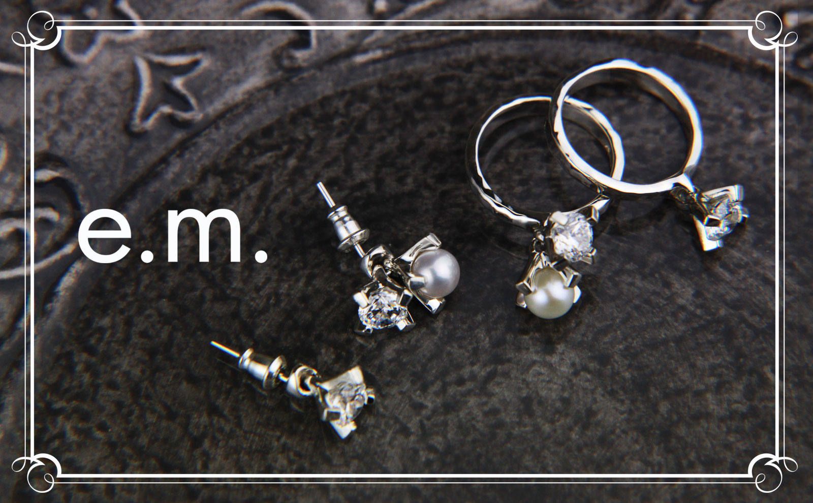 “みんながよろこぶモノづくり”「ありそでなさそなモノづくり」がコンセプトのe.m. 独自の世界観は幅広い層にファンの多いブランドです。ブランドアイコンでもある大きなキュービックジルコニアが揺れるシリーズはさまざまなアイテムで登場。e.m.×GENTILコラボジュエリーは他では買えないスペシャルなアイテムです。