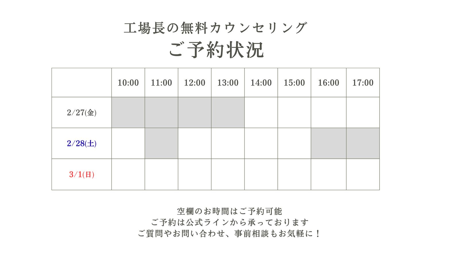 (白枠が予約可能)
