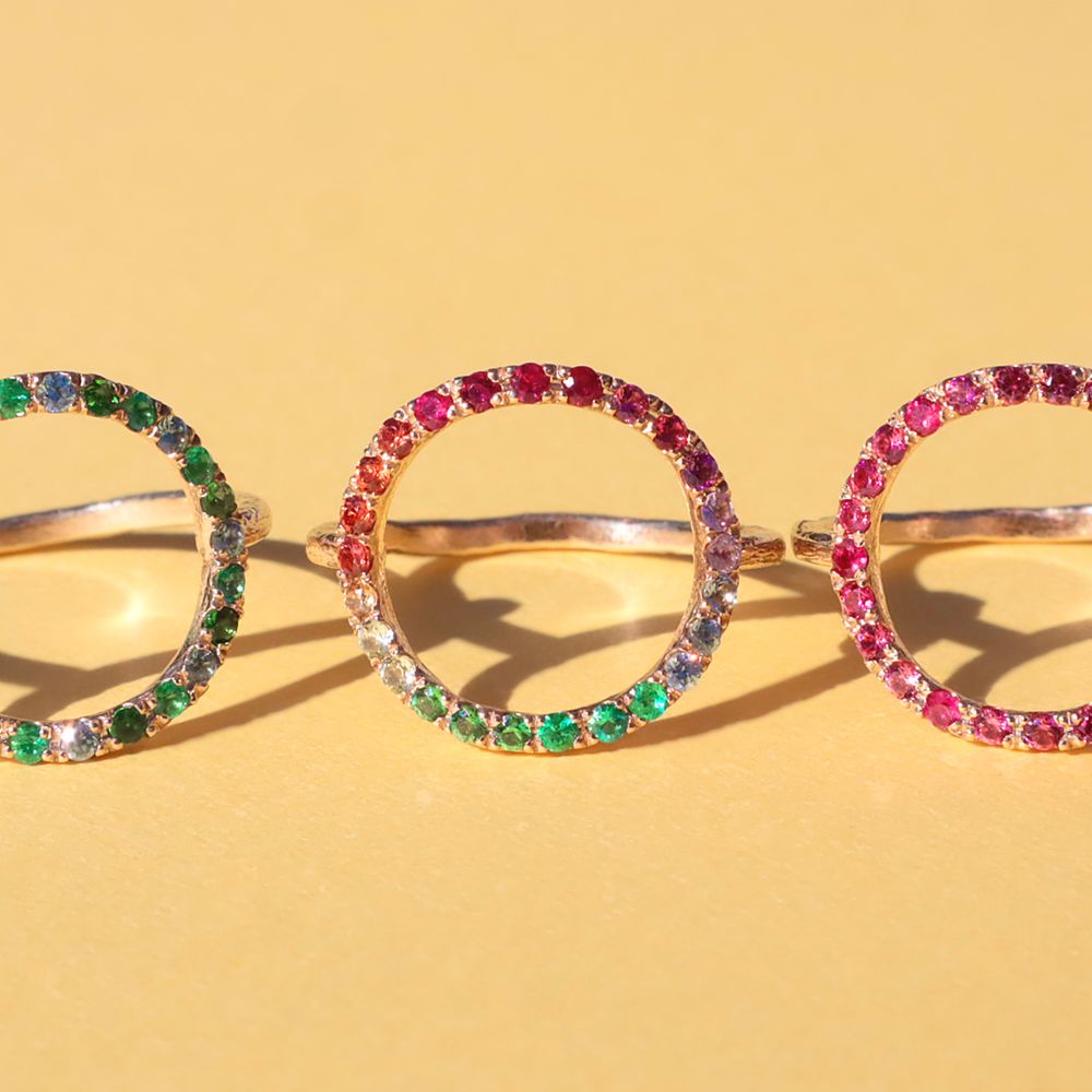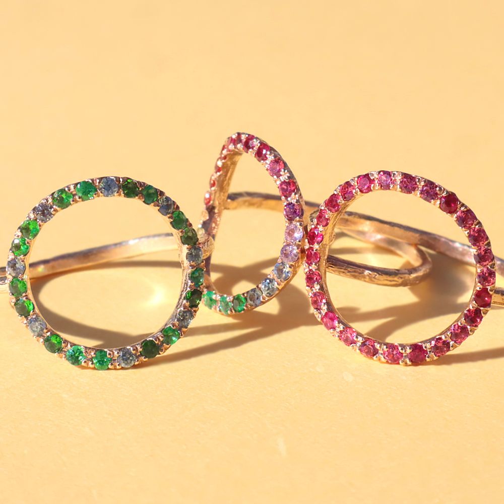 カラフルなカラースローンをふんだんに使用したグリッターシリーズ。今回は特別のオーダー会を実施。デザイナーが厳選した色石を使用したオンリーワンなアイテムは早い者勝ちですよ!